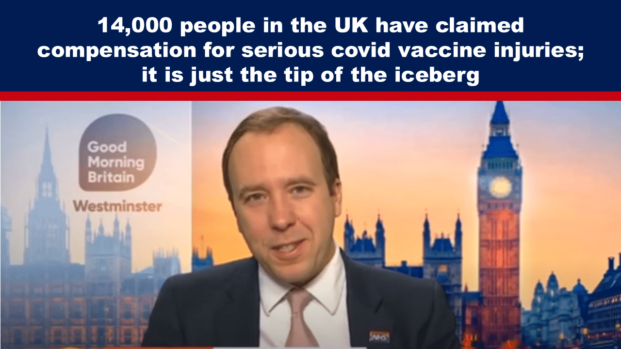 Nearly 14,000 people in Britain have applied for payments from the government for alleged harm caused by covid vaccines. This is just the tip of the iceberg as 365,000 serious adverse events, including death, have been reported to the Yellow Card scheme so far.
