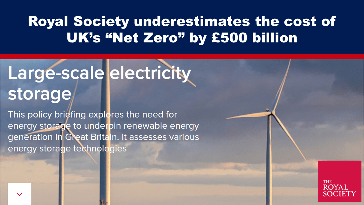 A key report published under the auspices of the Royal Society understated the cost of building a Net Zero electricity grid by half a trillion pounds, according to Net Zero Watch, in a post published today [2 September] on its website.