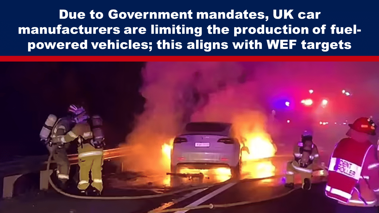 Due to Government mandates, UK car manufacturers are limiting the production of fuel-powered vehicles; this aligns with WEF targets