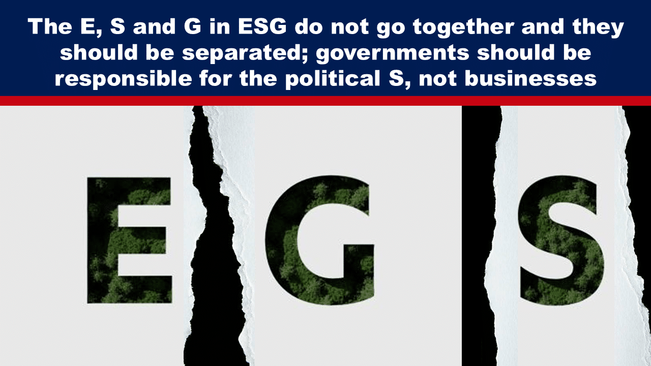 The widespread adoption of criteria is flawed, particularly the social category which lacks a clear connection to profitability. Mueller suggests that ESG advocates should abandon the social category entirely to focus on environmental and governance issues, which hold more relevance to business operations. ESG should be disaggregated and responsibility for social and political matters should be placed on public entities rather than businesses, he says.