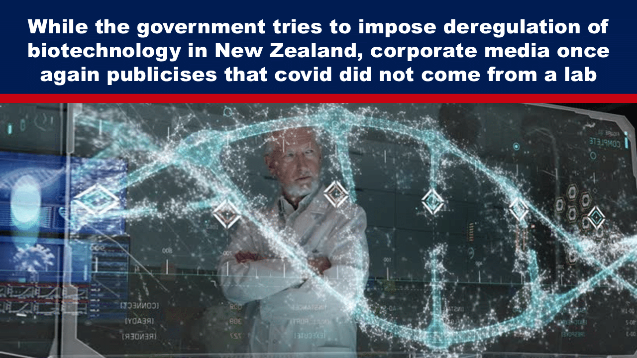 Currently, there’s a “debate” in New Zealand about biotechnology deregulation, with a one-sided portrayal in corporate media. Conveniently, New Zealand’s corporate media yet again spreading misinformation about the origins of covid, based on Anderson’s study, creates the wrong impressions about the safety of biotechnology deregulation.