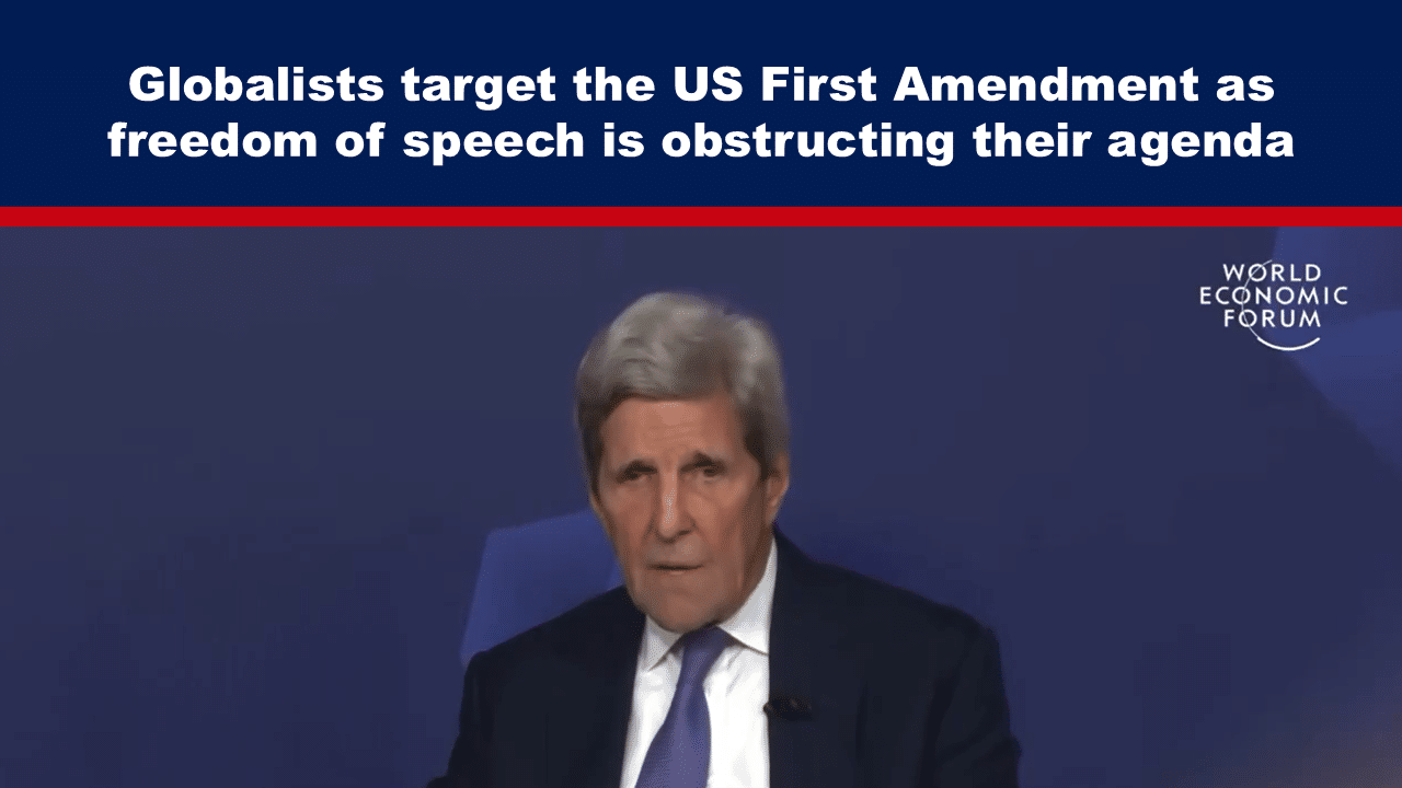 John Kerry, the former presidential climate envoy, spoke at the World Economic Forum’s sustainability impact meeting held during the week of 23 to 27 September 2024. He expressed frustration about the First Amendment obstructing the Globalists’ agenda. Kerry mentioned the difficulty in governing due to the right to freedom of speech, suggesting that a future administration might structure tools of government to limit Americans’ use of the First Amendment.