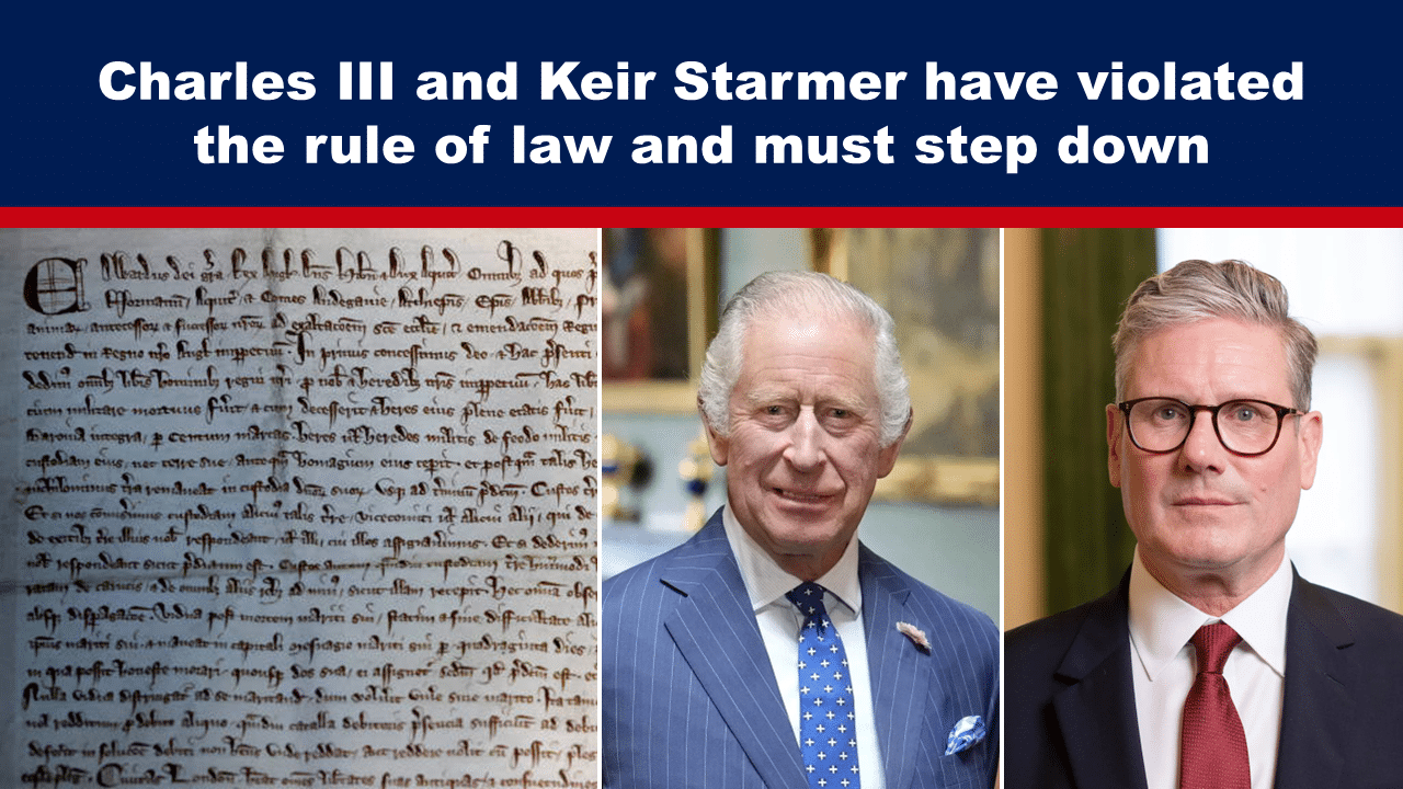 Last month, Steven Ward delivered a letter to King Charles III and UK Prime Minister Keir Starmer stating they have violated the rule of law.  By doing so they have acted unconstitutionally.
