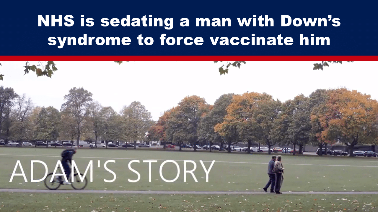 The National Health Service (“NHS”) in the UK has been secretly sedating a 30-year-old man with Down’s syndrome, Adam, with powerful sedatives in his drinks (tea, orange juice, or Coke) to subdue him before administering the covid “vaccine” and booster injections against his mother’s will.