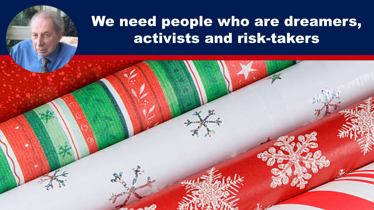 In another, he tells us why he’s been buying Christmas wrapping paper early. In yet another he notes that we need people who are dreamers, activists and risk-takers.