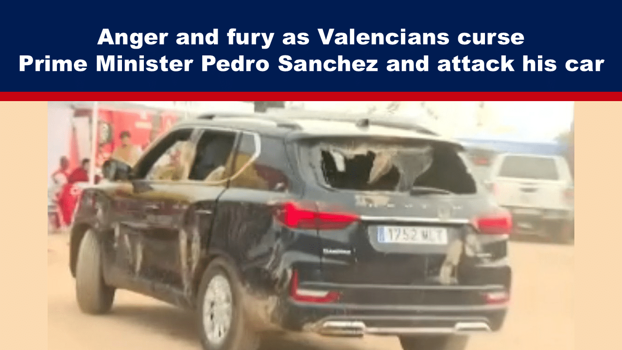 This is what remains of Spanish Prime Minister Pedro Sanchéz’ car after he made a very late (six days too late) visit, with the King and Queen, to the epicentre of the DANA disaster, in Paiporta, Valencia.