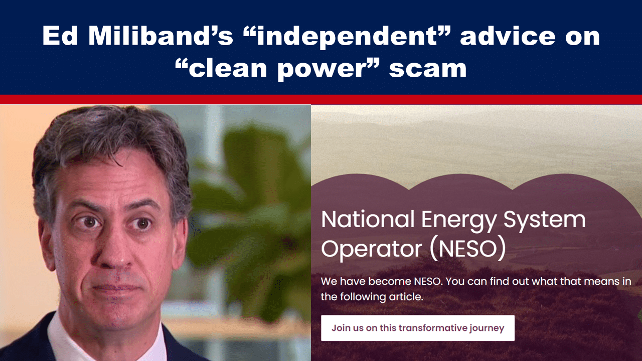 Ed Miliband, the UK government’s “green energy” tzar, proudly announced he had received independent advice from a “new” company, NESO.