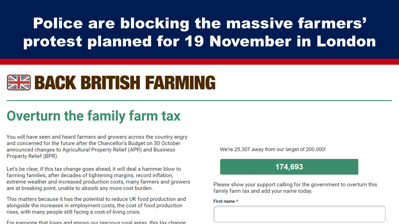 Police are blocking the massive farmers’ protest planned for 19 November in London