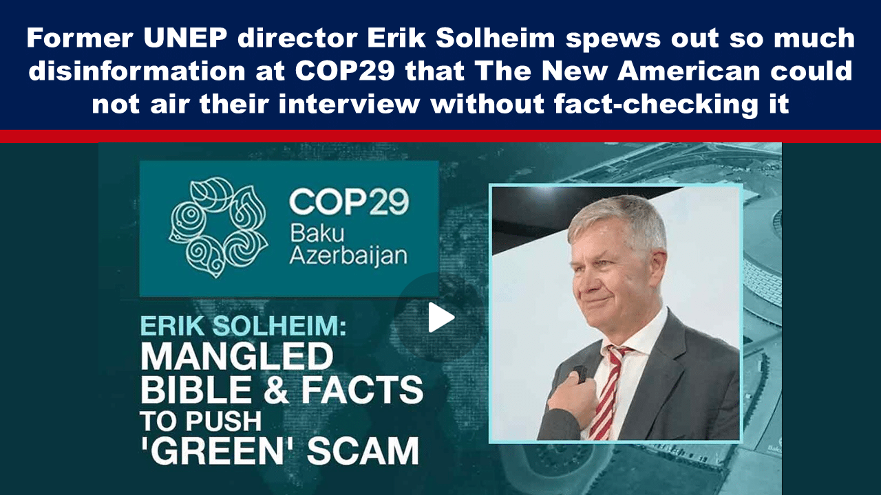 Former UNEP director Erik Solheim spews out so much disinformation at COP29 that The New American could not air their interview without fact-checking it
