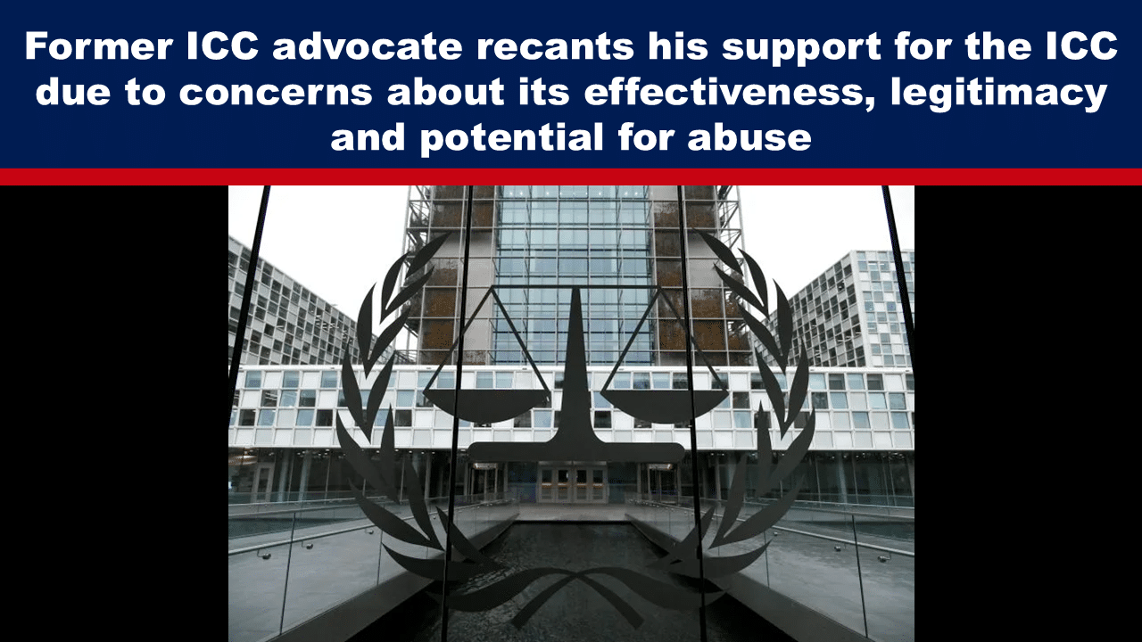 A former advocate for the International Criminal Court (“ICC”), has recanted his support for the ICC due to concerns about its effectiveness, legitimacy, and potential for abuse, citing cases such as the arrest warrants against Israel’s PM and former defence minister, and the ICC’s reliance on the UN Security Council for enforcement action.