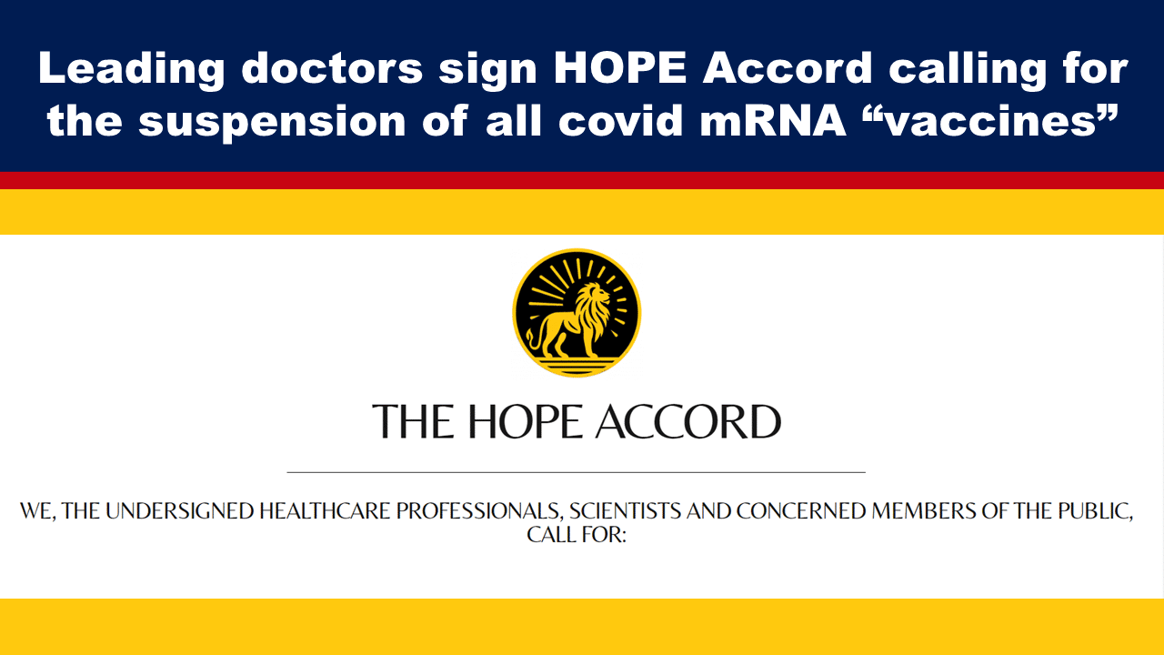 The online petition, known as the HOPE accord makes 5 calls for the international community concerning the covid mRNA vaccines that were given emergency use authorisation stating that “a growing body of evidence suggests that they are contributing to an alarming rise in disability and in excess deaths.”