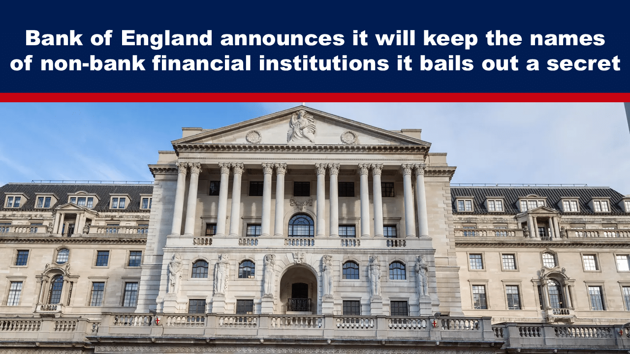 On Monday, the Bank of England announced it will hide the identities of any pension funds, insurers or hedge funds bailed out to avoid the stigma. This new policy of secrecy to protect banks’ identity will begin in 2025 when the central bank launches its Contingent NBFI Repo Facility.