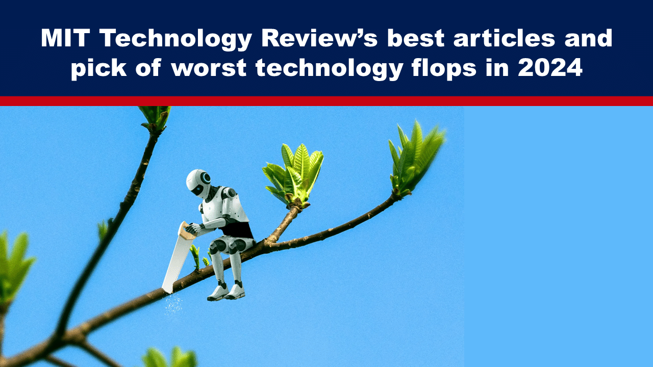 The following are two articles published by MIT Technology Review. The first is the most-read articles of 2024 and the second is the worst technology failures of 2024 which include vertical farms, woke AI and 23andMe.
