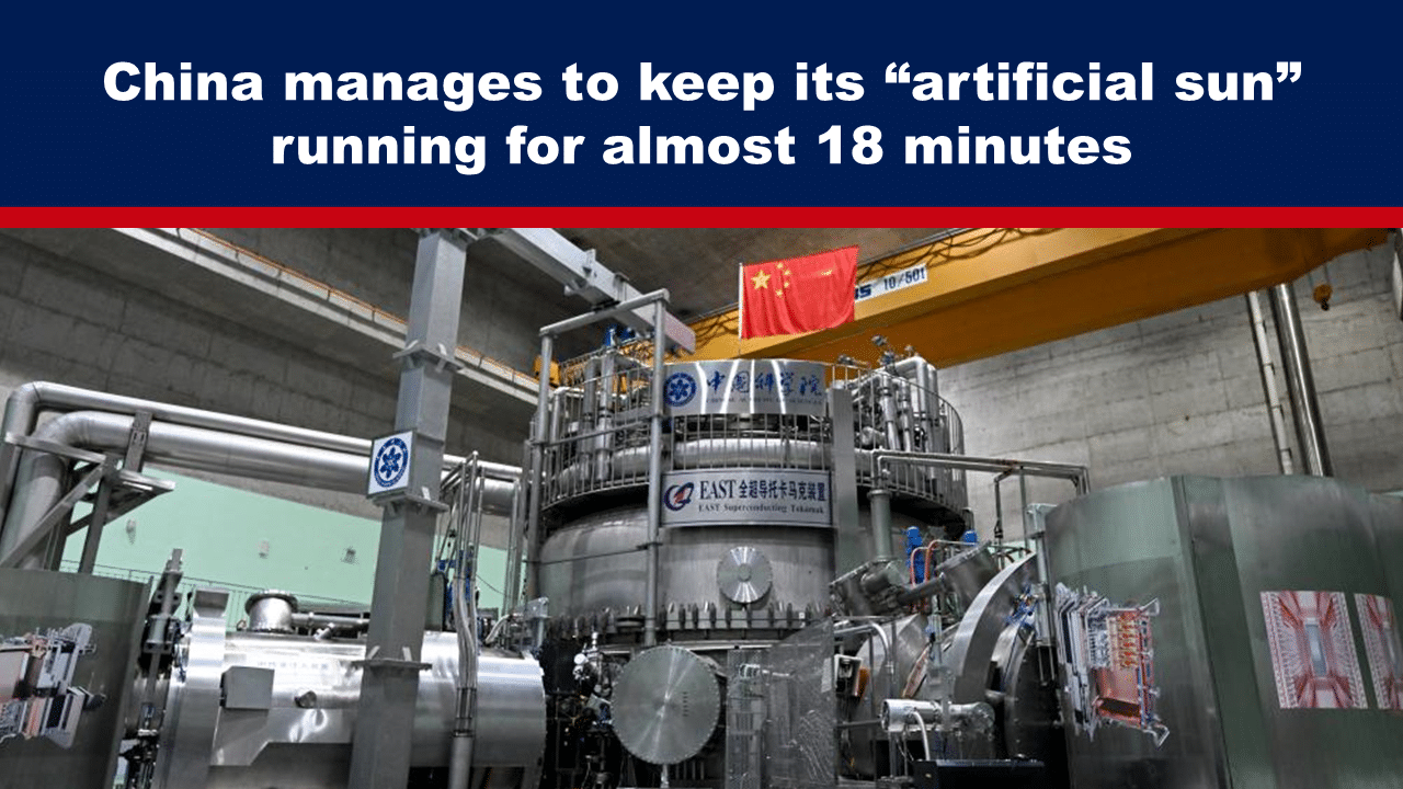 In April 2023, the Chinese Academy of Science wrote that one of China’s “artificial suns,” named the Experimental Advanced Superconducting Tokamak (“EAST”), achieved a steady-state high-confinement plasma operation for 403 seconds, providing an important experimental basis for the operation of ITER.
