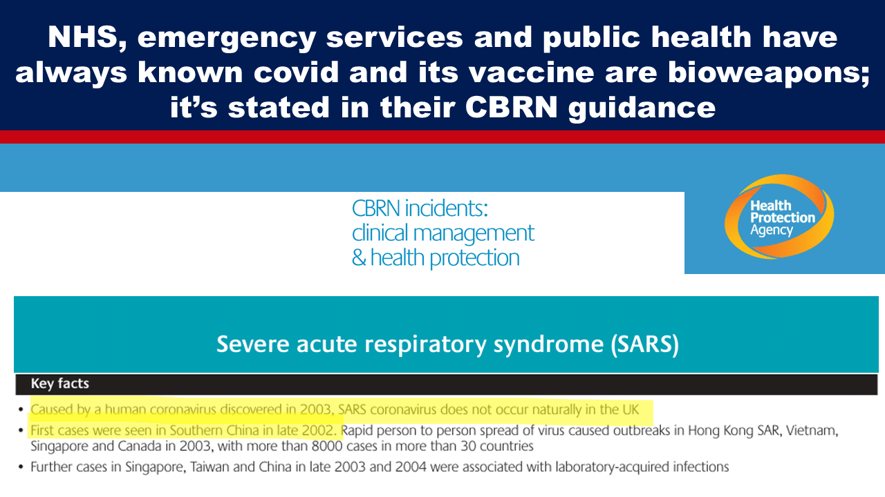 For more than a decade all emergency services, primary care and public health staff in England have known coronaviruses do not naturally occur and are bioweapons; yet they have been and still are permitting, if not encouraging, them to be injected into people en masse since the rollout of the covid vaccines.