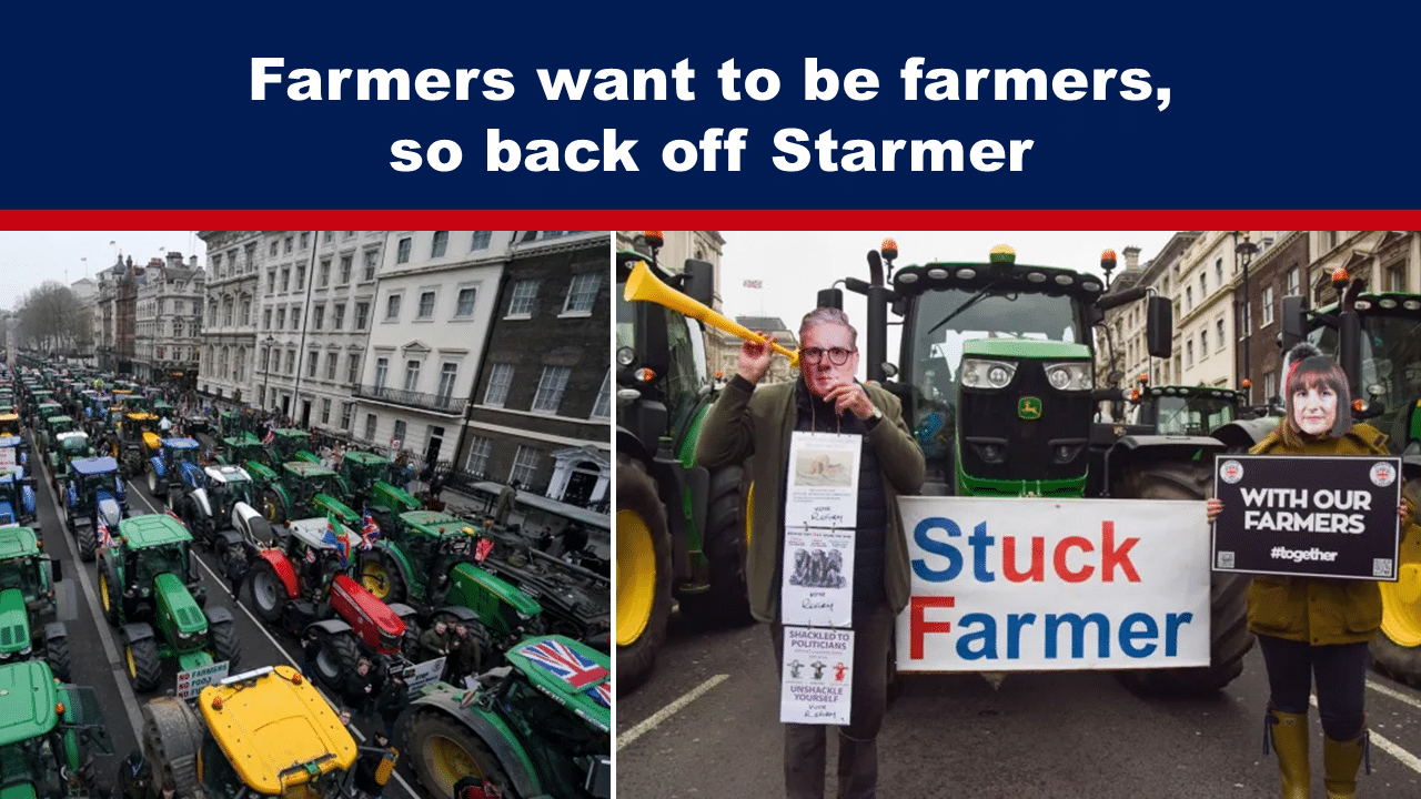 UK farmers staged a fresh tractor protest today in London against inheritance tax changes, with Reform UK leader Nigel Farage addressing the protesters. Conservative figures including shadow foreign secretary Dame Priti Patel also attended.