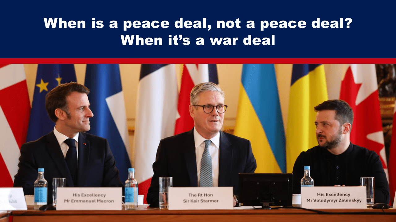 Sir Keir Starmer and President Macron are leading a coalition to continue the war in Ukraine. The war in Ukraine is driven by ego, malice and geopolitical interests, with Western leaders like Boris Johnson playing a significant role in preventing a peace deal between Ukraine and Russia three years ago, Paul Collits writes.