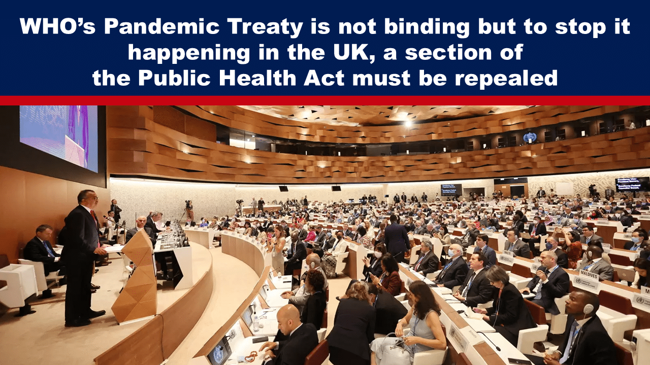 WHO’s Pandemic Treaty is not binding but to stop it happening in the UK, a section of the Public Health Act must be repealed