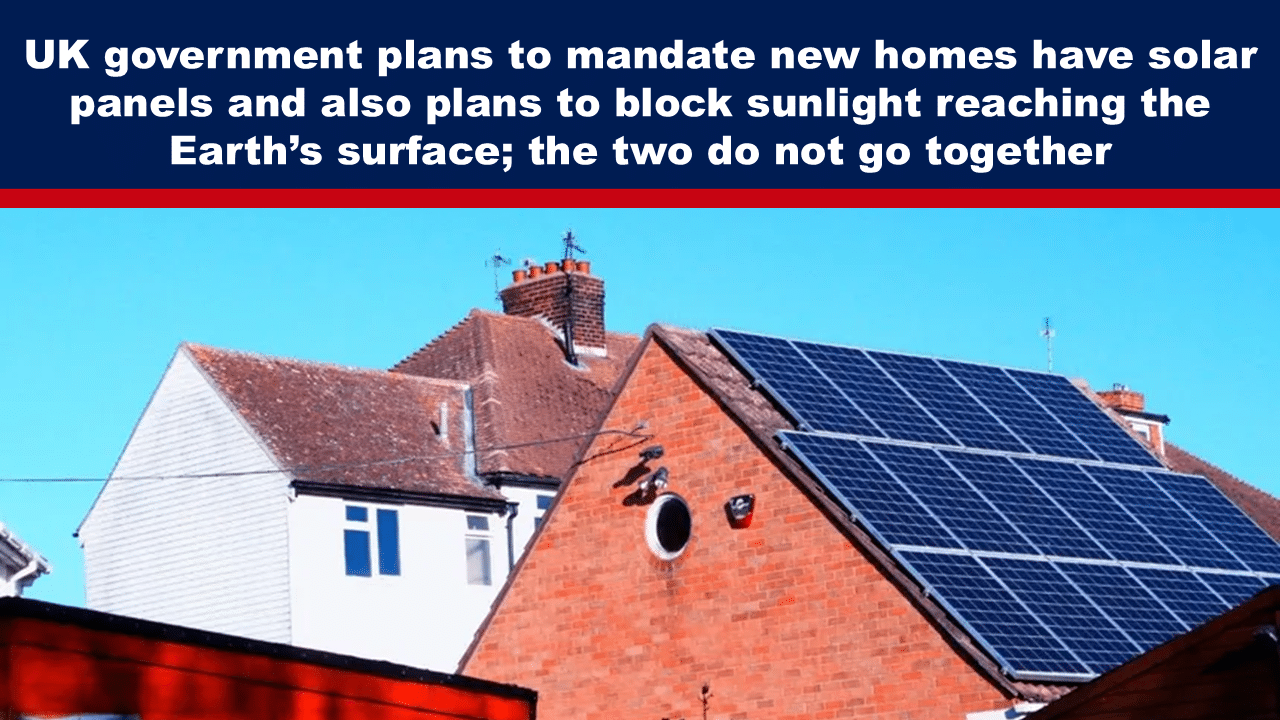 UK government plans to mandate new homes have solar panels and also plans to block sunlight reaching the Earth’s surface; the two do not go together
