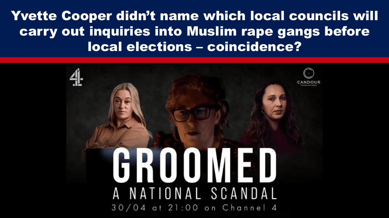 Yvette Cooper didn’t name which local councils will carry out inquiries into Muslim rape gangs before local elections – coincidence?