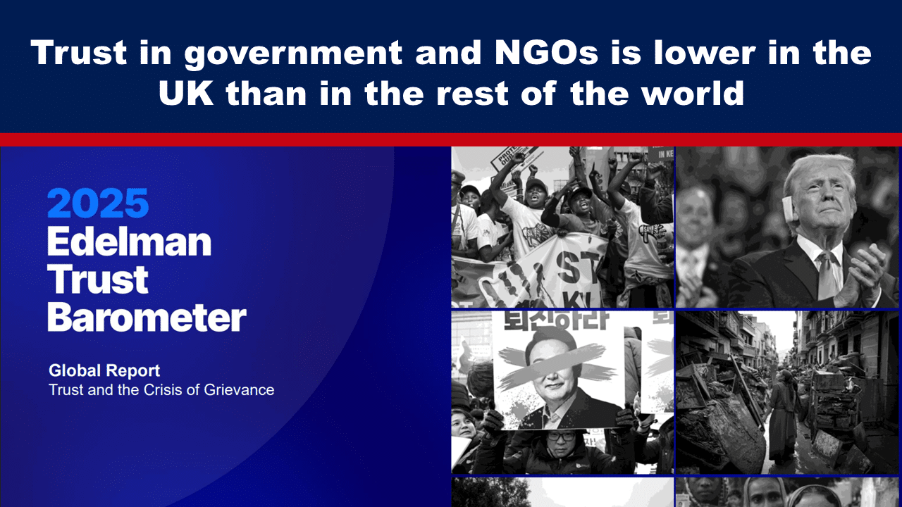 Trust in government and NGOs is lower in the UK than in the rest of the world