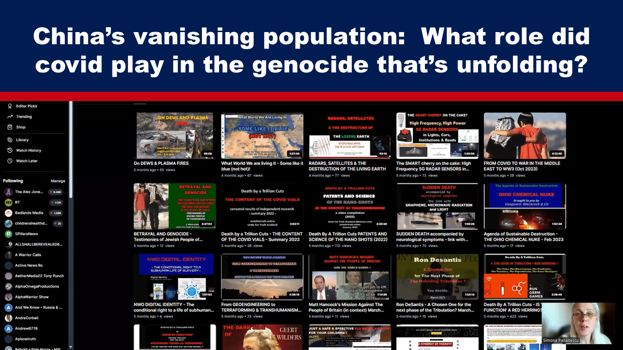It seems the only way to gauge what is happening in China is to scour news stories, podcasts, interviews and social media posts and glean from them what researchers are able. In the video below, Simona Panaitescu, host of the podcast Unite For Truth Edu, summarises numerous such posts related to China, covid, which has since morphed into several other mysterious infectious diseases, and the covid “vaccines.” The picture she paints is truly shocking.