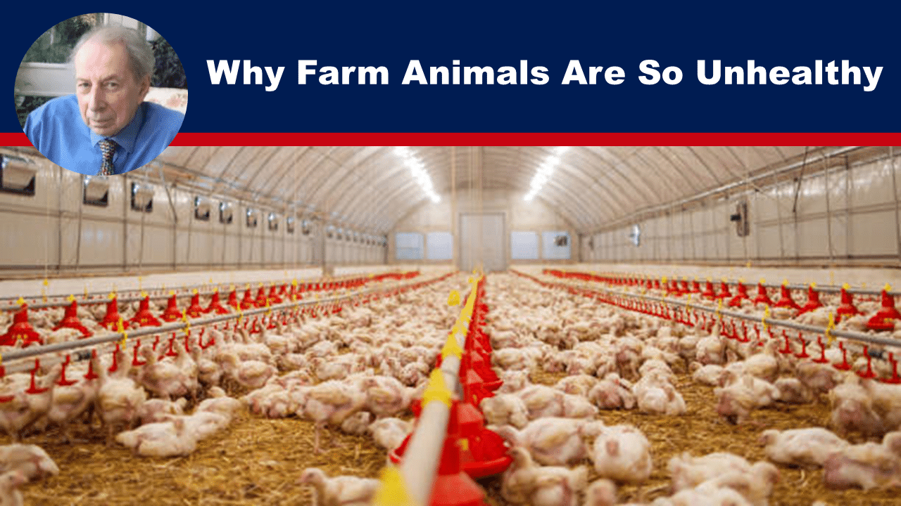 Farm animals are more prone to illness due to high stocking densities, lack of exercise and inadequate diet, Dr. Vernon Coleman says.
