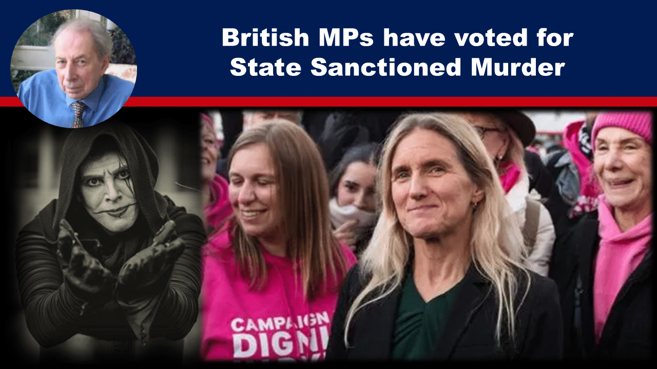 As I write this, my wife is in tears, distraught because British MPs have voted to allow the State to kill the poor, the unemployed, the disabled, the frail and the elderly.