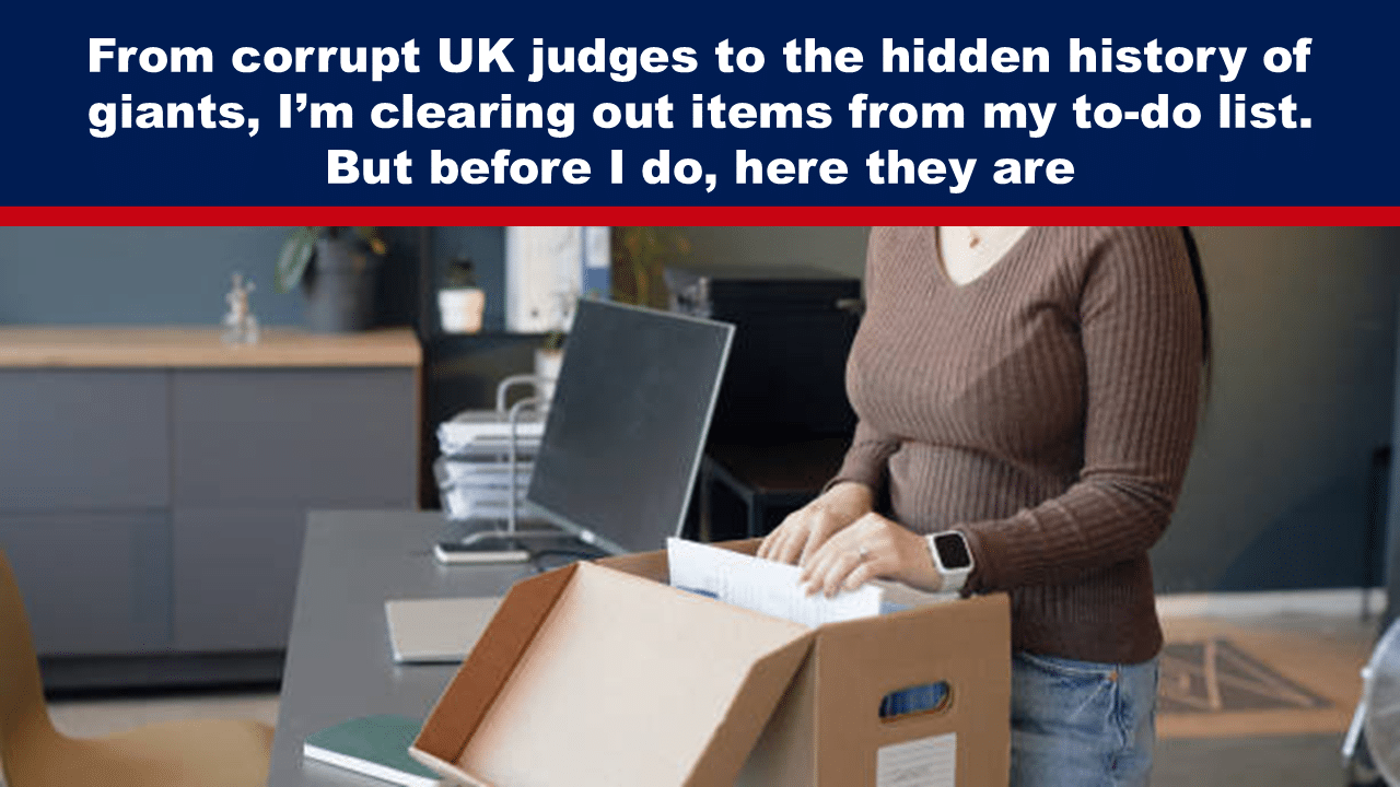 From corrupt UK judges to the hidden history of giants, I’m clearing out items from my to-do list. But before I do, here they are