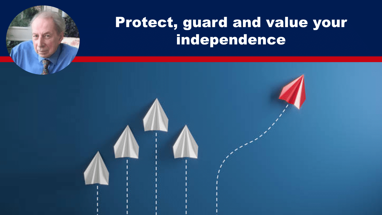 Protect and value your independence, as it is easy to lose and hard to regain, Dr. Vernon Coleman warns.