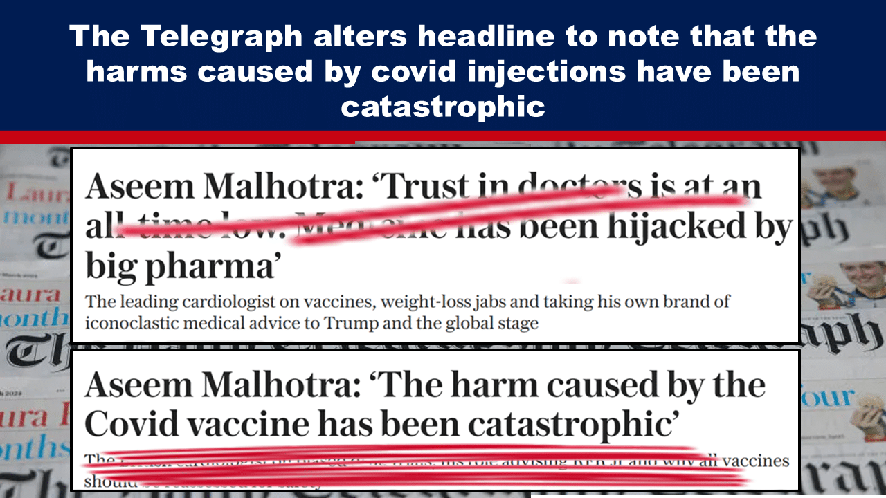 On Tuesday, Dr. Aseem Malhotra alerted the public to a change in one of The Telegraph’s headlines to read: ‘Aseem Malhotra: ”The harm caused by covid vaccine has been catastrophic”’.