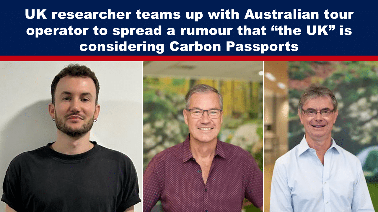 UK researcher teams up with Australian tour operator to spread a rumour that “the UK” is considering Carbon Passports