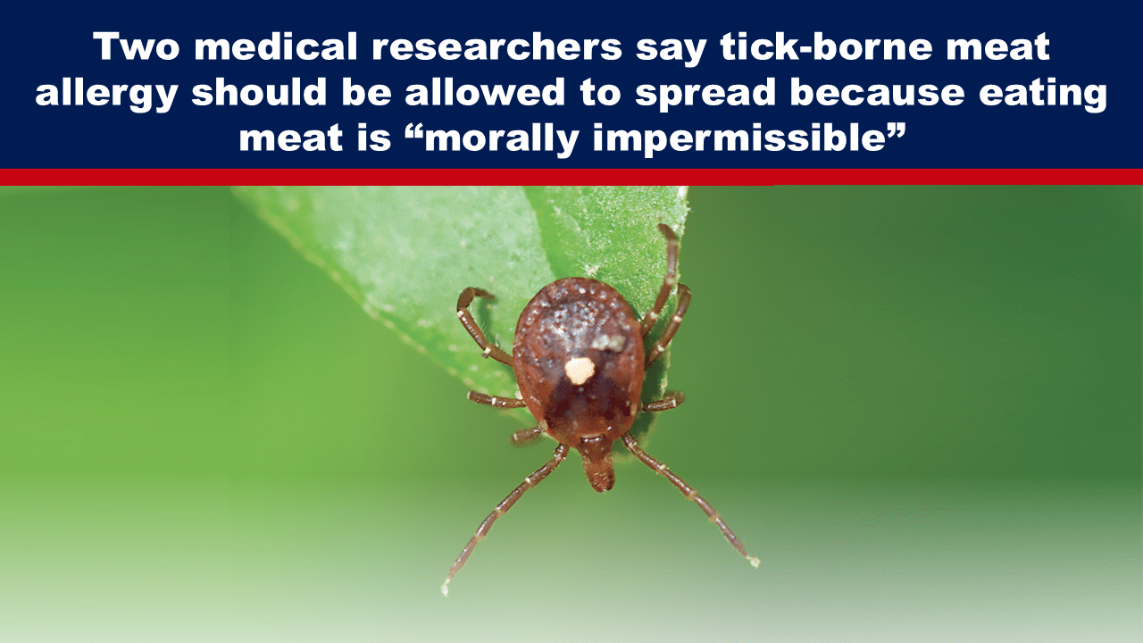 Last month, a paper by two American researchers from the Western Michigan University School of Medicine was published in the journal Bioethics. In their paper, they used the warped argument that “eating meat is morally impermissible” and so “efforts to prevent the spread of tick-borne AGS are also morally impermissible.”