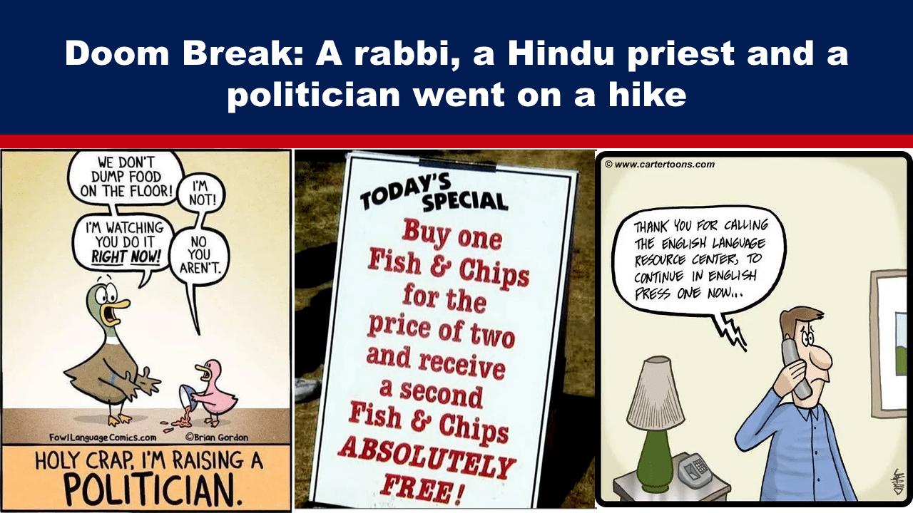 TriTorch publishes articles on a Substack page titled ‘Out Here on The Perimeter’. Every now and then, he/she publishes a collection of observations, questions and jokes, humorous memes and videos he/she has come across, which he/she calls “Doom Break,” as in taking a break from the doom.